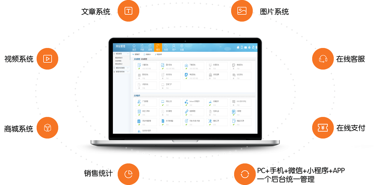 统一后台管理也是方便灵活,模板+标签、可视化拖拽等所见即所得的设计模式,用户不需要太多专业的建站知识,就可以做到快速建立子网站(微站群功能)、建立多个不同风格的专题网站(模板+标签功能)、配合商城管理、信息管理、问答留言、图片管理、供求信息、微信公众号管理、微信小程序管理等功能模块,就可以快速搭建出用户所需要的多元化信息平台!